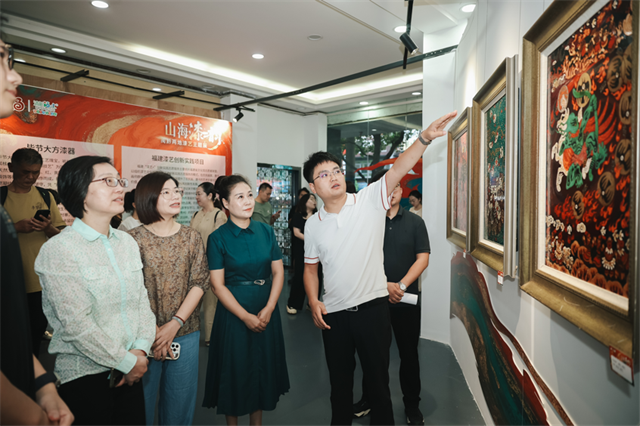 “山海漆韵”主题展及沙龙 9月11日,“山海漆韵”主题展及沙龙于贵州省文化馆举行,此次主题展聚焦闽黔漆艺文化,集中展出两地漆艺精品30余件,涵盖福建农民漆画的质朴生动、唐卡漆画的庄重典雅、脱胎漆器的精巧细腻,以及贵州大方漆器的醇厚古朴,全方位展现传统漆艺在新时代背景下的创新发展成果。 在主题沙龙环节,闽黔两地漆艺传承人、文化学者等围绕两地漆艺特色解析、守正创新、人才培养等议题展开深度研讨与思想碰撞。与会嘉宾一致认为,闽黔漆艺在工艺技法、文化内涵上各有特色,具备巨大的融合发展潜力,未来应进一步加强资源共享、人才互通,共同推动传统漆艺实现创造性转化与创新性发展。 在黔期间,还实地调研、学习交流当地公共文化场馆、“村BA”成功举办的典型经验、做法。
